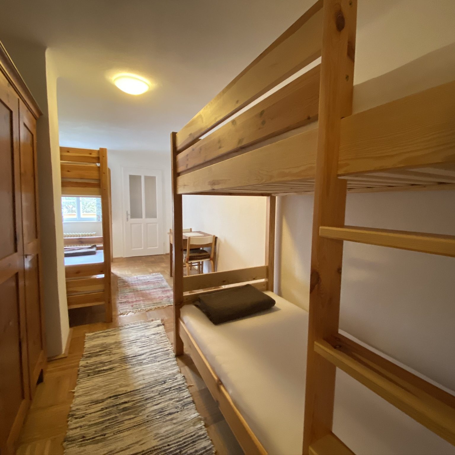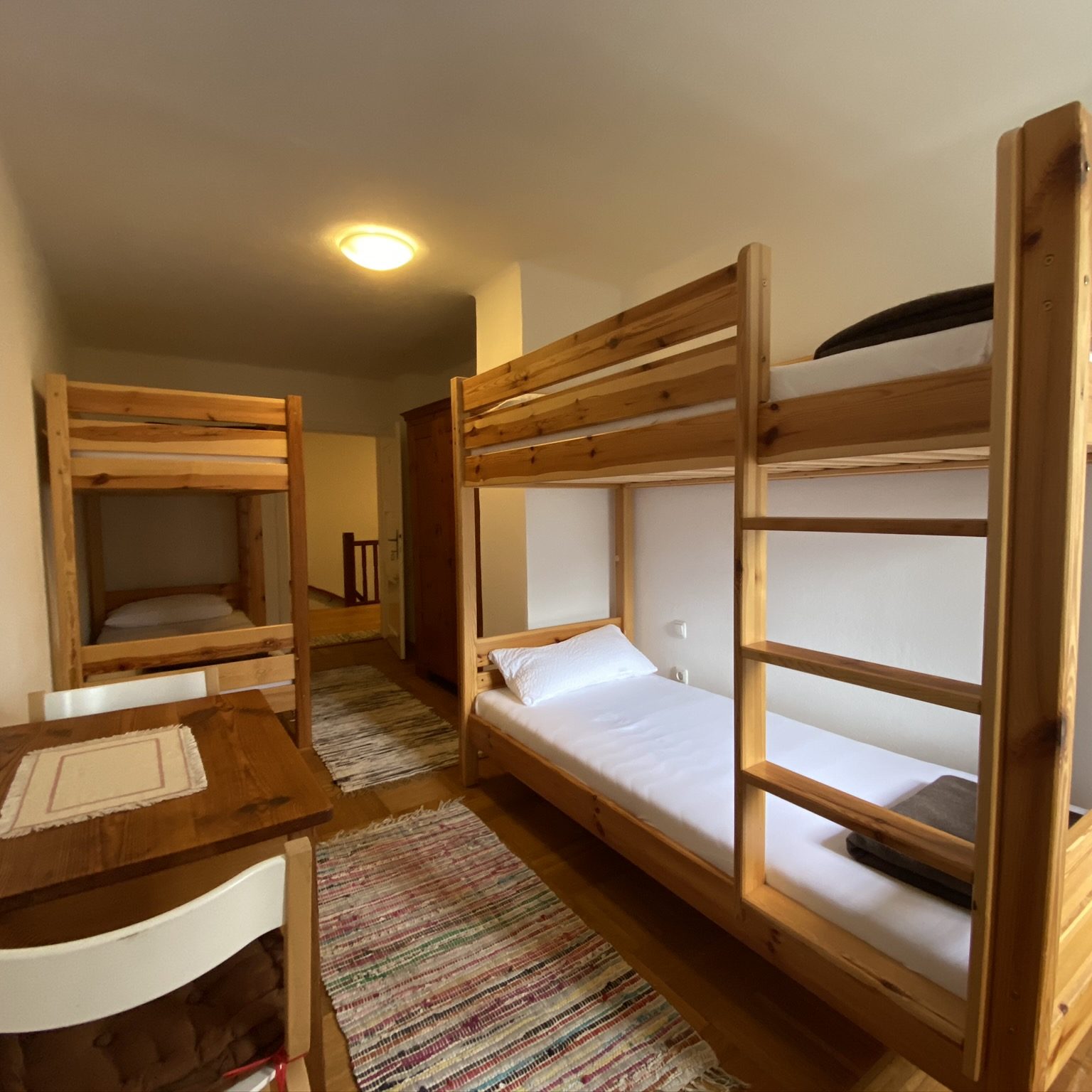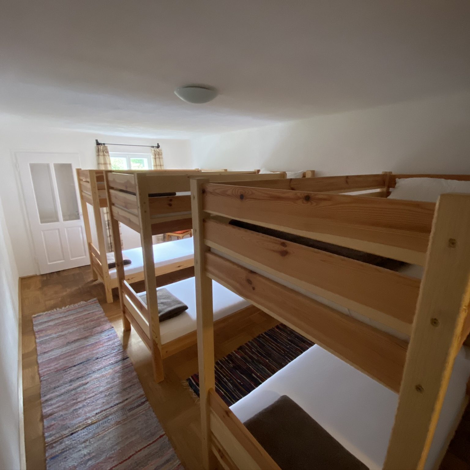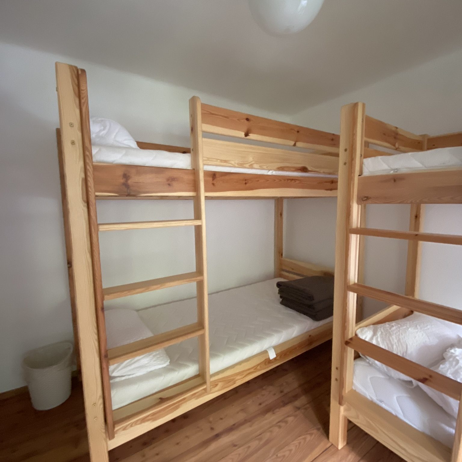 Im Schlafzimmer mit der Nummer 8 können 6 Personen träumen. 3 Stockbetten und ausreichend Platz sorgen dafür, dass die Luft nicht knapp wird.